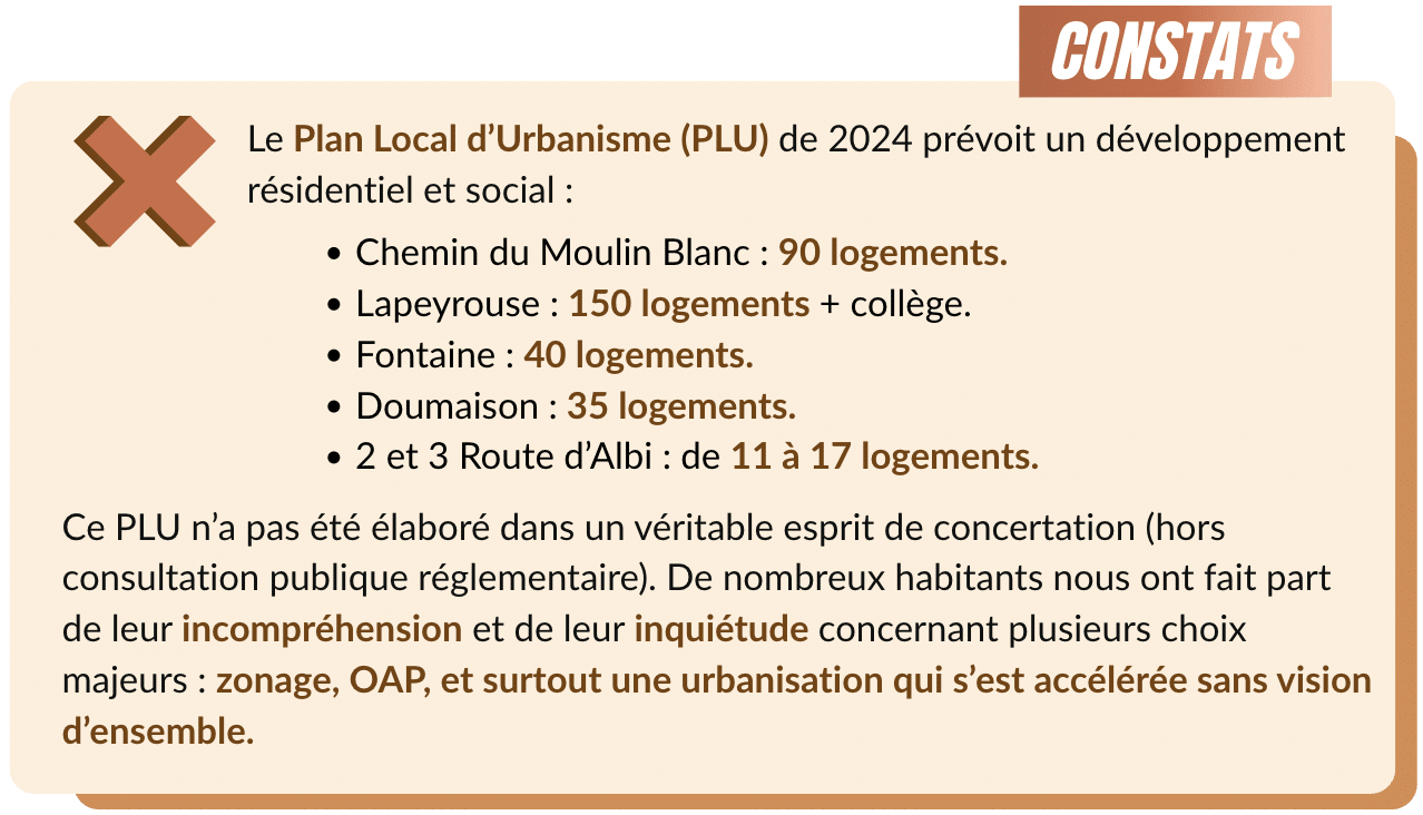 Notre but est clair : protéger Castelmaurou, l’écouter vraiment, et construire pour de vrai son avenir.