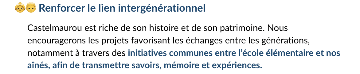 Au fond, notre but est simple : préserver cette harmonie, ce respect entre générations, et faire en sorte que Castelmaurou reste ce village fraternel et sécurisant.