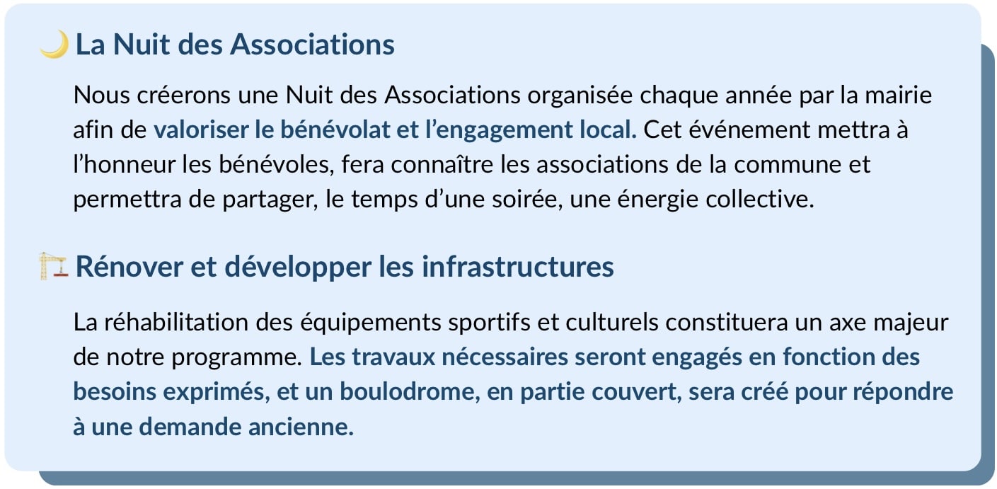 Mon objectif est de contribuer à un village plus attractif, mieux éclairé, mieux connecté, et surtout plus relationnel, où la communication et la proximité entre les habitants deviennent une force.