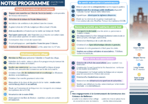 Ce programme est le vôtre. Il a été construit en concertation, grâce à nos rencontres, à notre sondage et aux nombreux échanges avec les habitants, les commerçants, les associations, les jeunes, les aînés et les acteurs locaux. Parce que le dialogue doit être au cœur de l’action municipale, chaque mesure présentée ici part de vos besoins et de vos priorités.
